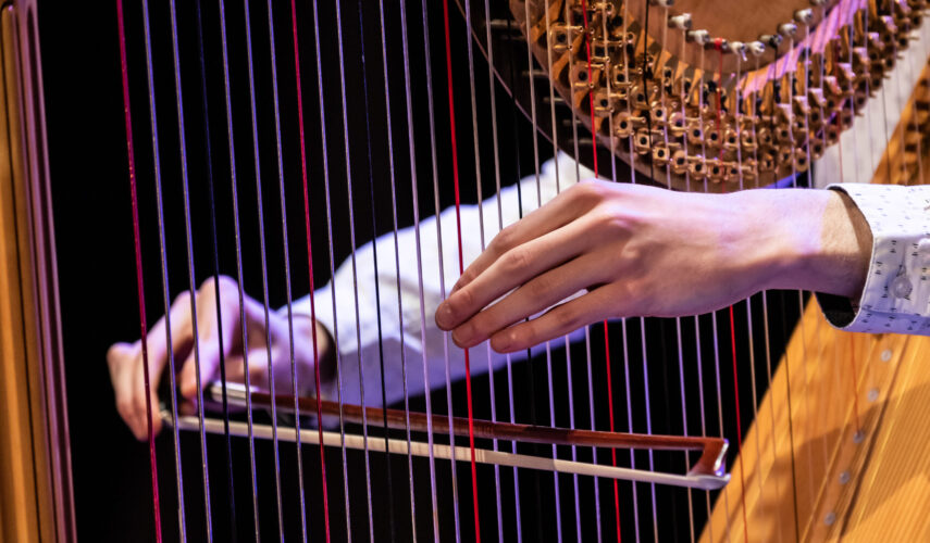 In HPSCHD (1969) stelde John Cage muziek voor als een levend systeem van klank, beeld, machines en toeval. Op 4 maart brengen twintig bachelor- en masterstudenten van de afdeling ArtScience van het Koninklijk Conservatorium Den Haag dit idee tot leven in het Atrium, met hun uitvoering van Postcard from Heaven. Twintig harpisten bespelen tegelijk evenveel harpen, waarmee ze een bijzondere lichtprojectie activeren. Die projectie blijft wekenlang zichtbaar en vloeit over in het dagelijks leven in de publieke ruimte van het Atrium.