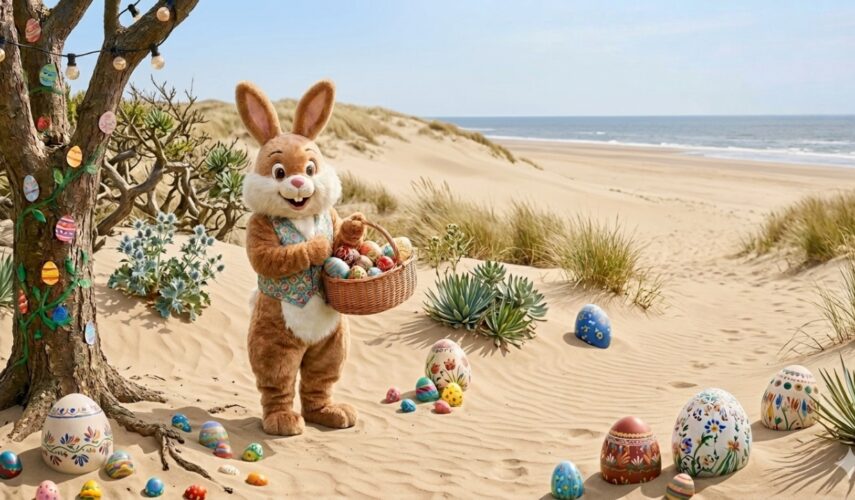 • Op de foto met de Paashaas (loopt mobiel rond door de badplaats: Promenade, deltaplein en boulevard).
